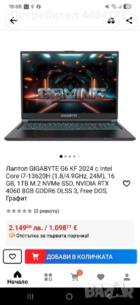 Gigabyte G6 KF i7 13620h RTX 4060 16gb DDR5 → Обява 51333940