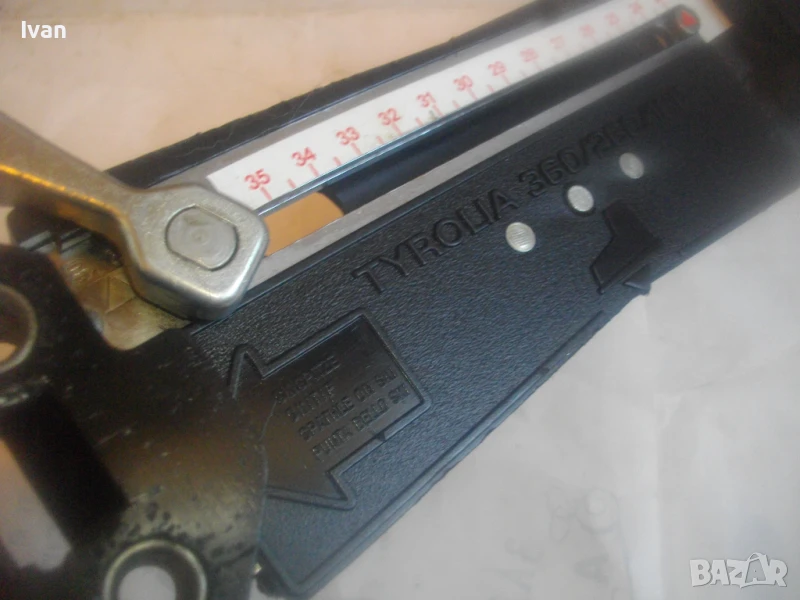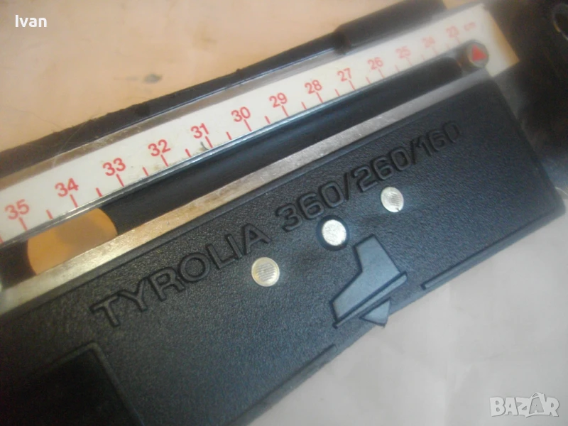 Почти нов оригинален австрийски ски апарат на Тиролия. Маркировка за марка лого и размер стопери TYROLIA 360/260/160. Метална основа с инокс неръждавейка покритие в комбинация с пластмаса на дръжките. Реглаж 14-30 см и 23-36см.