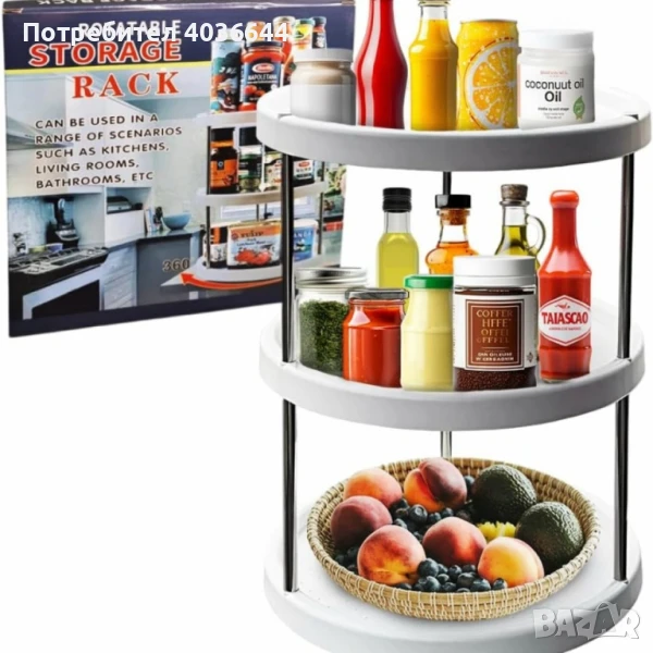 Въртяща се 3-етажна поставка – 360° организация за кухня, баня и дом → Обява 51334759