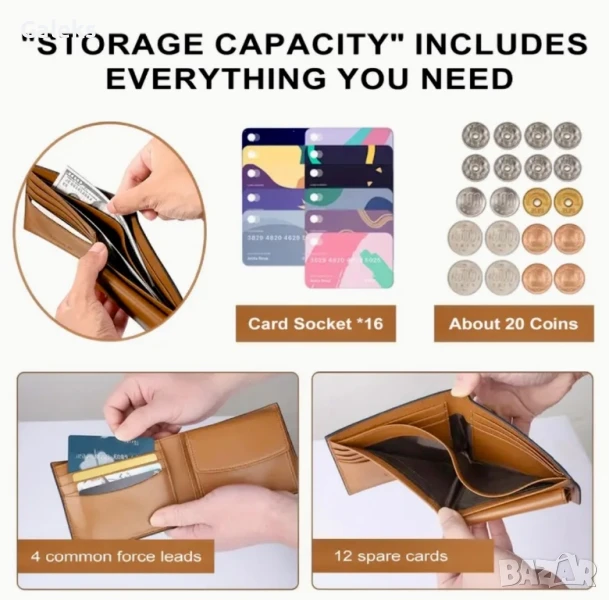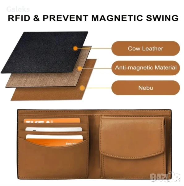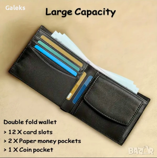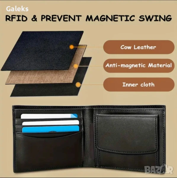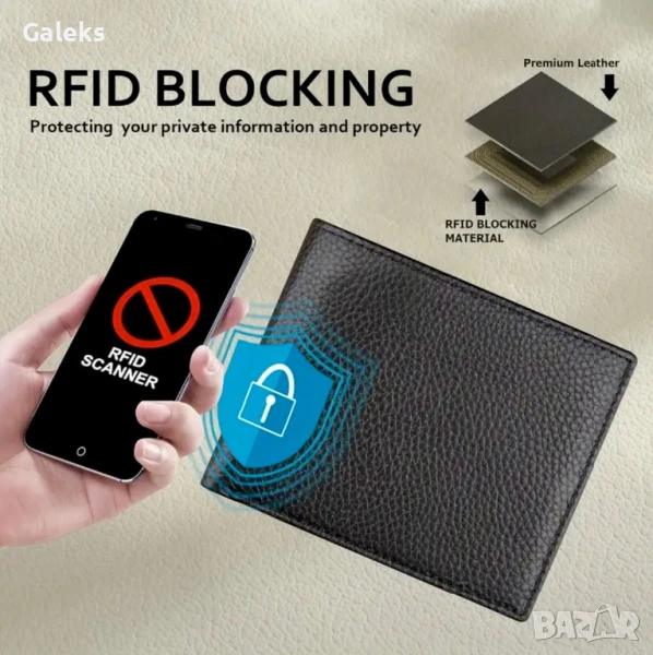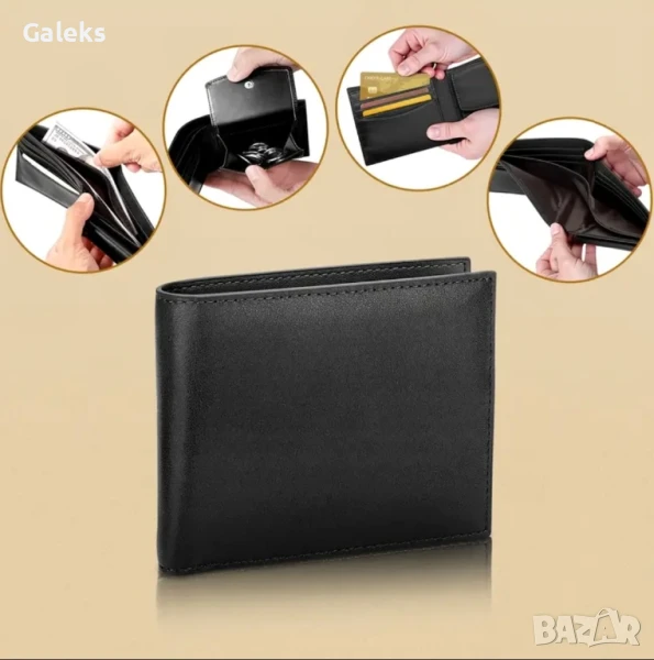 Луксозни, модерни и удобни мъжки кожени портфейли (Екранирани и с RFID защита!!), черни на цвят с две лица.