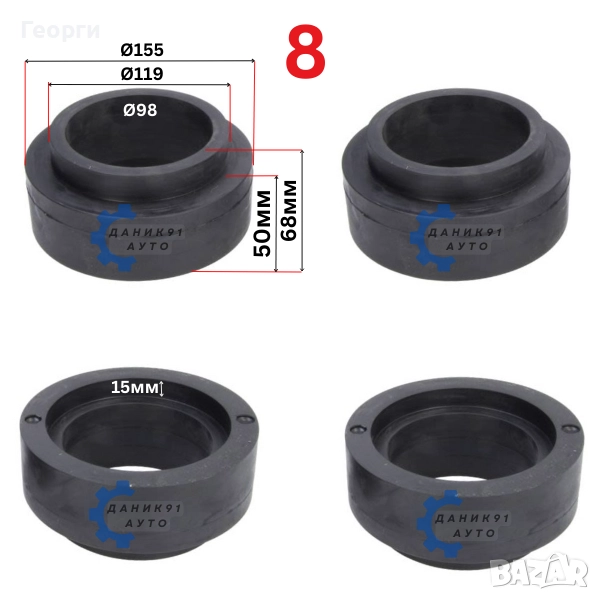 Подложка пружина TOYOTA LAND CRUISER LJ 70 - 73 предна и задна 40мм - к-т четири броя полиуретан - 126,00 лв. ( 64,42 € )