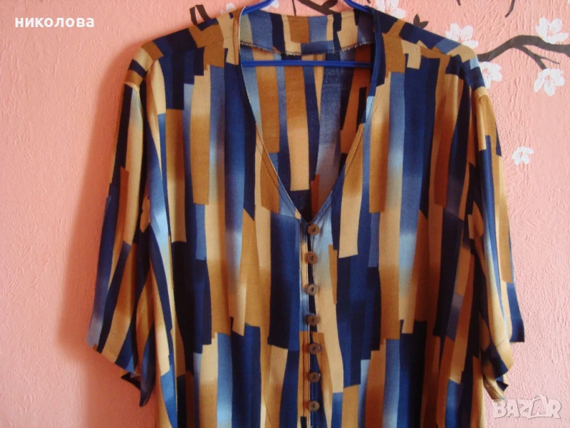 Материята е мека и много приятни цветове! Изненада от дъщеря ми,но не ми е по мярка! Подходяща за XL и за 2XL При интерес ще дам подробни размери!