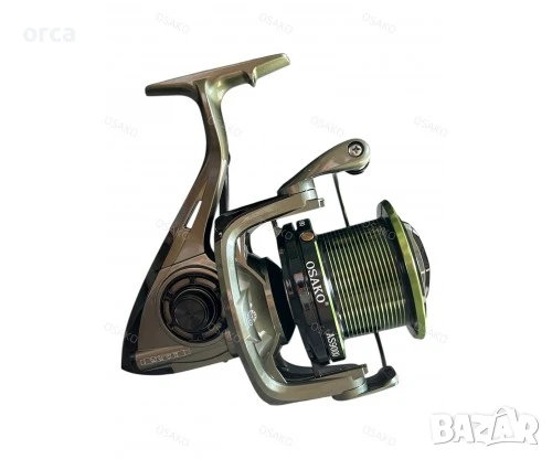 Макара Osako AS 9000 е сред новите и добре проектирани модели на марката, създадена специално за дънен и шаранджийски риболов. Отличава се с изключителна здравина, червячен механизъм Worm Shaft System и преден аванс, които я правят идеален избор за борба с трофейни риби като шаран, сом, щука и бял амур.