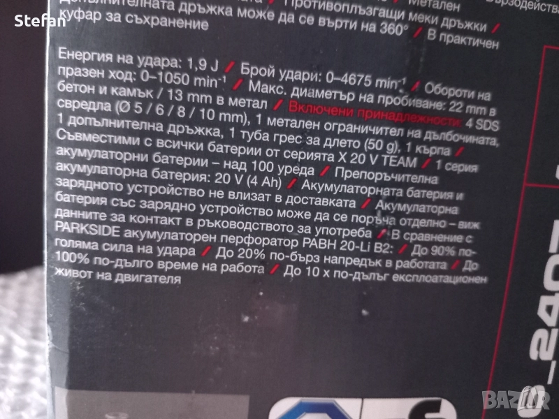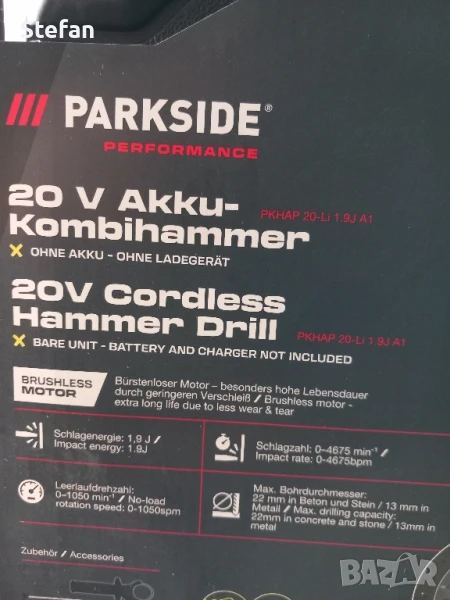 Нови/Неотваряни/ Мощни Перфоратори PARKSIDE - безчетков мотор в удобен куфар за съхранение. Без батерия и зарядно. Гаранция - 5 години. Повече инфо вижте снимките. Модела - 1.9j - 87 €. Модела - 3j - 101 €. Цените са крайни.