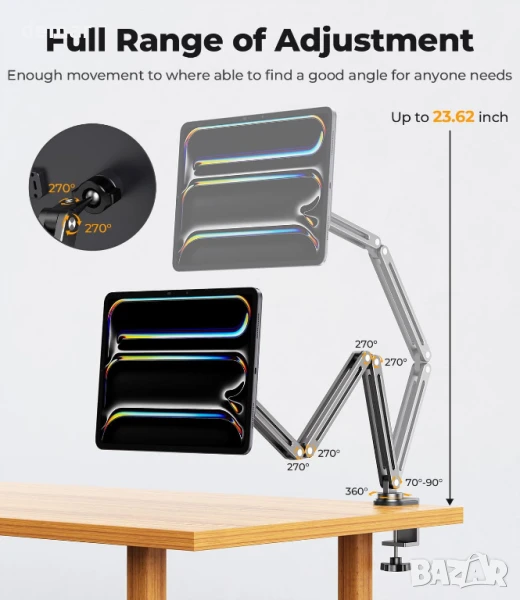 Тази магнитна стойка за зареждане е проектирана специално за iPad Pro 11" M4 (2024), предлагайки бързо 18W USB-C зареждане с прецизно магнитно подравняване Pin Smart. Нейната въртяща се на 360° основа и тристепенно сгъваемо рамо осигуряват гъвкави настройки на височината и ъгъла, от компактен размер на бележник до висока конзолна скоба за творческа или офис употреба. Стойката разполага с 84 силни N52 магнита за сигурно задържане, с ултратънък силиконов слой за предотвратяване на надрасквания и хлъзгане. Изработена от аерокосмическата алу