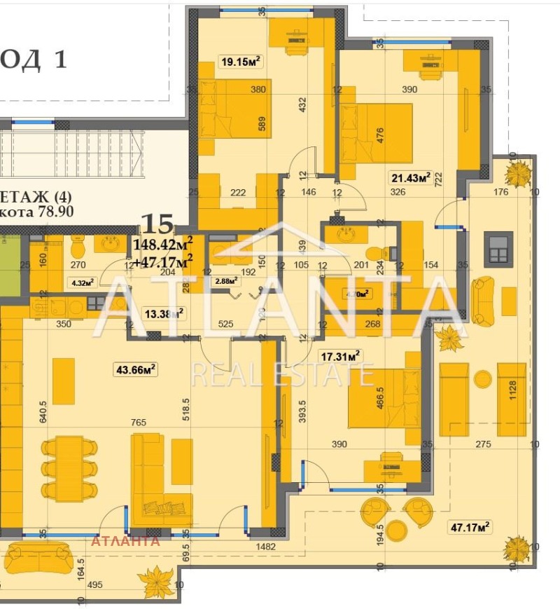 Предлагаме Ви за продажба четиристаен апартамент в новостроящ се комплекс.