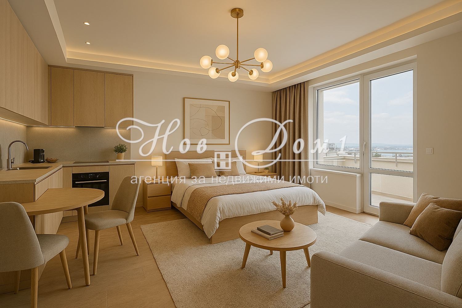 -Дневен тракт с обособен кухненски бокс / Спалня