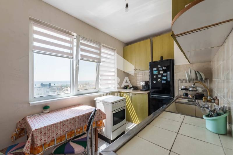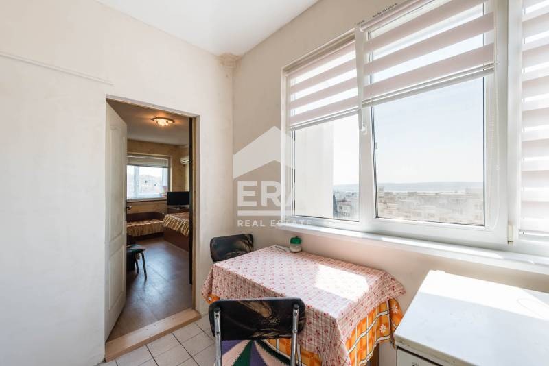 ЕКСКЛУЗИВНО! ХОЛ, СПАЛНЯ, КУХНЯ, ЮГ/ЮГОИЗТОК, В БЛИЗОСТ ДО ПОЩАТА. ЕРА Варна Тренд предлага за продажба двустаен панелен апартамент в кв. Владиславово бл. 36. Имотът е със застроена площ 57,55 кв.м, разположен на шести етаж от общо 8 етажа. Състои се от входно антре (5 кв.м), баня с тоалетна (3,5 кв.м), хол (17 кв.м) с излаз на остъклена с ПВЦ тераса, спалня (14 кв.м), самостоятелна кухня (8 кв.м) и прилежащо мазе (2,76 кв.м). Изложението е юг (кухня) - югоизток (хол и спалня). От трите стаи се открива гледка към целия град, морето и нос Галата.