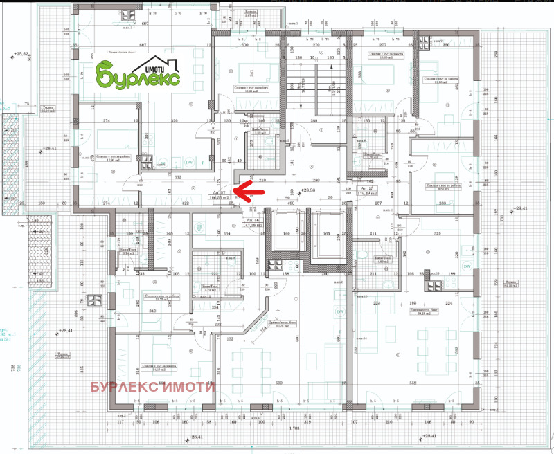 БУРЛЕКС ИМОТИ представя на вашето внимание тристаен апартамент с обща площ: 121,33 м² м² и чиста площ на жилището: 106,55 м², разположен на ет.7 от 11 етажна сграда в строеж, пред Акт 14.