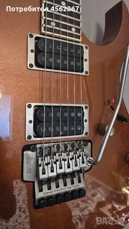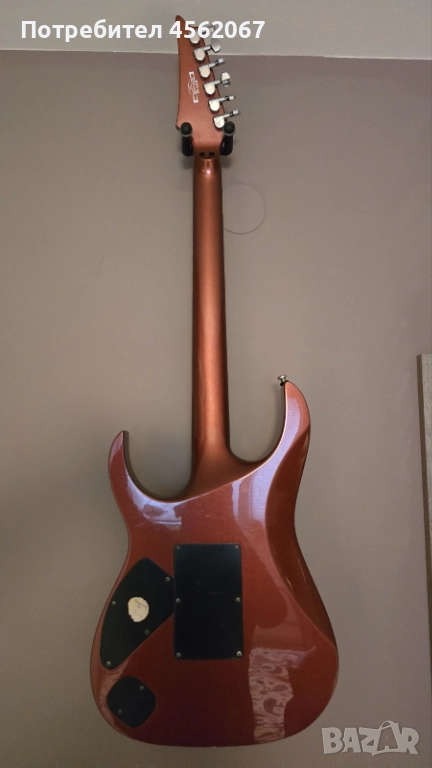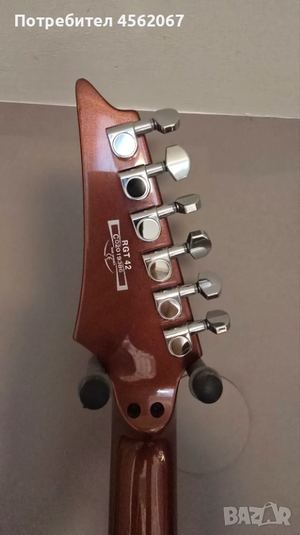 Продавам електрическа китара Ibanez RGT42 Made in Korea, фабриката на Cort, 2002-ра година, както се вижда от серийния номер. Necktrough конструкция. Грифът и основната част на тялото с комбинация от орех и клен, а страниците, доколкото намерих информация са от липа, адаптери INF1/2, тремоло lo-trs trem II. Прагчетата са в много добро състояние като се има в предвид възрастта на китарата. Миналата година са изравнявани, екшънът е нисък. Има малко следи по задната част на китарата, като по-големите съм ги снимал.
