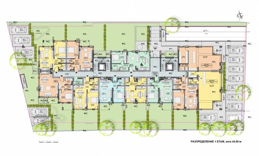 От общата площ, 10,57 кв.м са предвидени за склад, а 2,67 кв.м - за санитарно помещение. Търговската зала ще бъде завършена с под от гранитогрес и гранит, а стените и таваните на латекс. В санитарното помещение ще бъдат положени фаянс, гранитогрес и водоустойчив окачен таван.