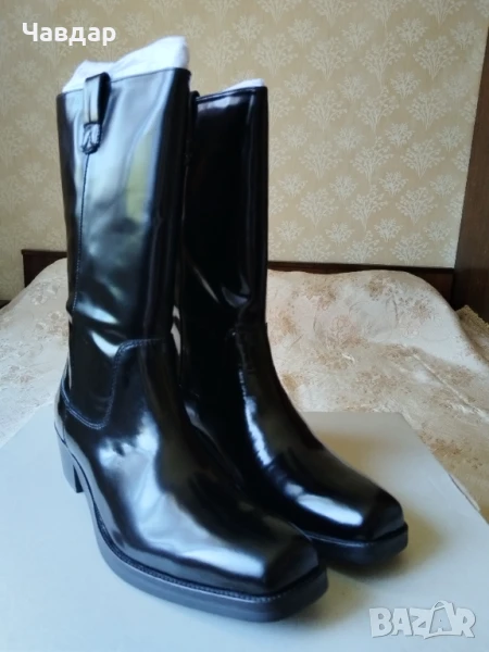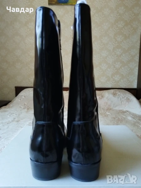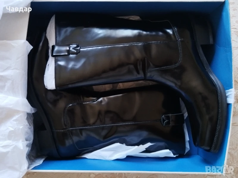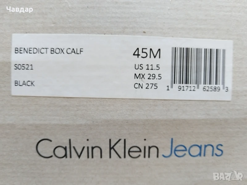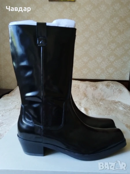 Мъжки ботуши Calvin Klein - естествена кожа, цвят - черен. Размер по етикет - 45, стелка 29,5 см. Но реално измерена стелката е 31-32 см. НОВИ в оригинална кутия. Цена - 100 евро.