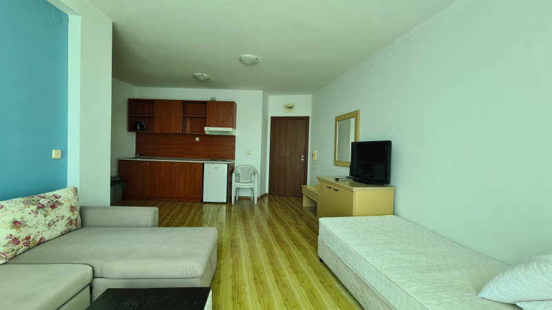Удобства в комплекса: басейн, бар, ресторант, анимация за деца, целогодишна охрана и поддръжка 9,6 Евро/кв.м. годишно. Възможност за менажиране на апартамента.