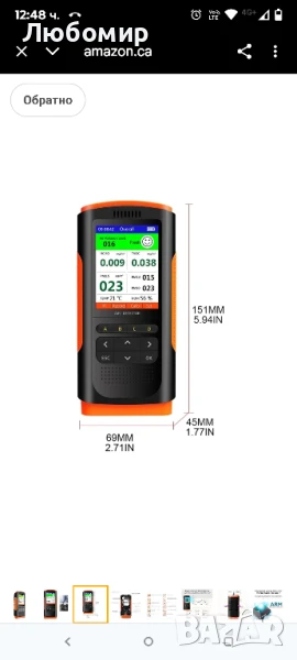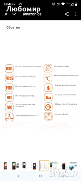 Нивото на опасност от вредни газове като формалдехид и телекомпонентни органични съединения (TVOC) не е предназначено за статичен мониторинг за систематично отчитане на състоянието на околната среда.