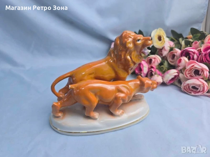 Стара фигура с лъвове.Цената е 35лв,фигурата е със забележка.Размерите в снимките.