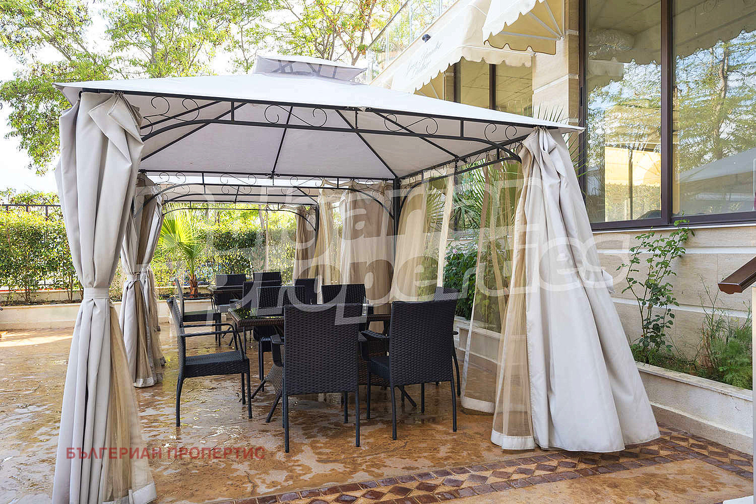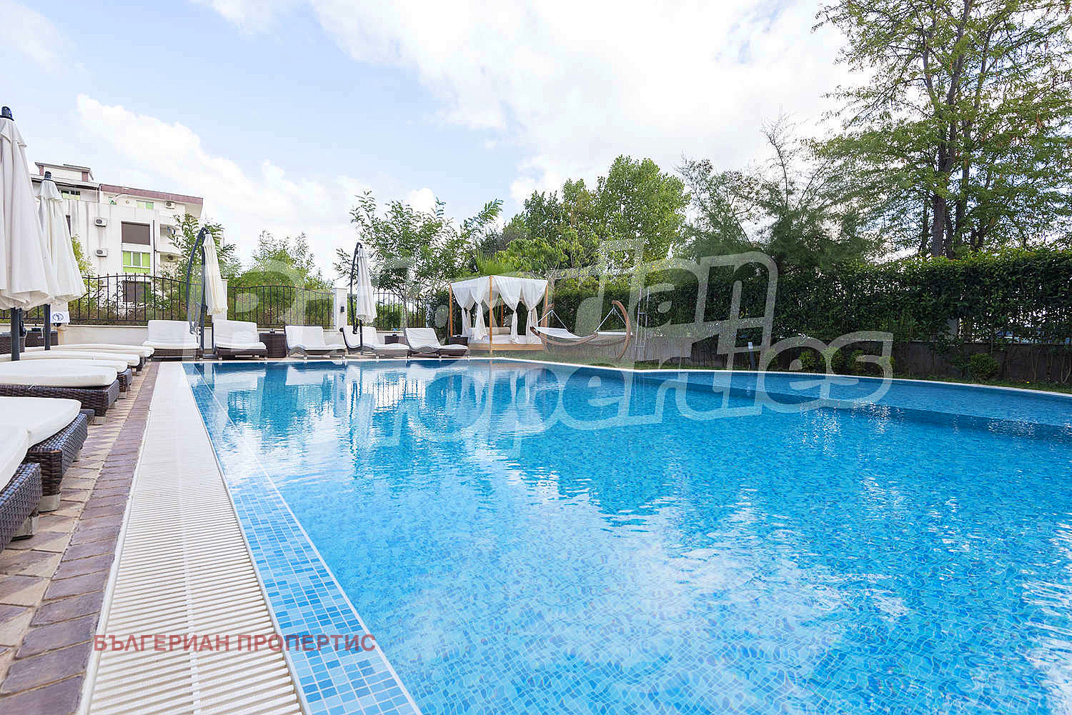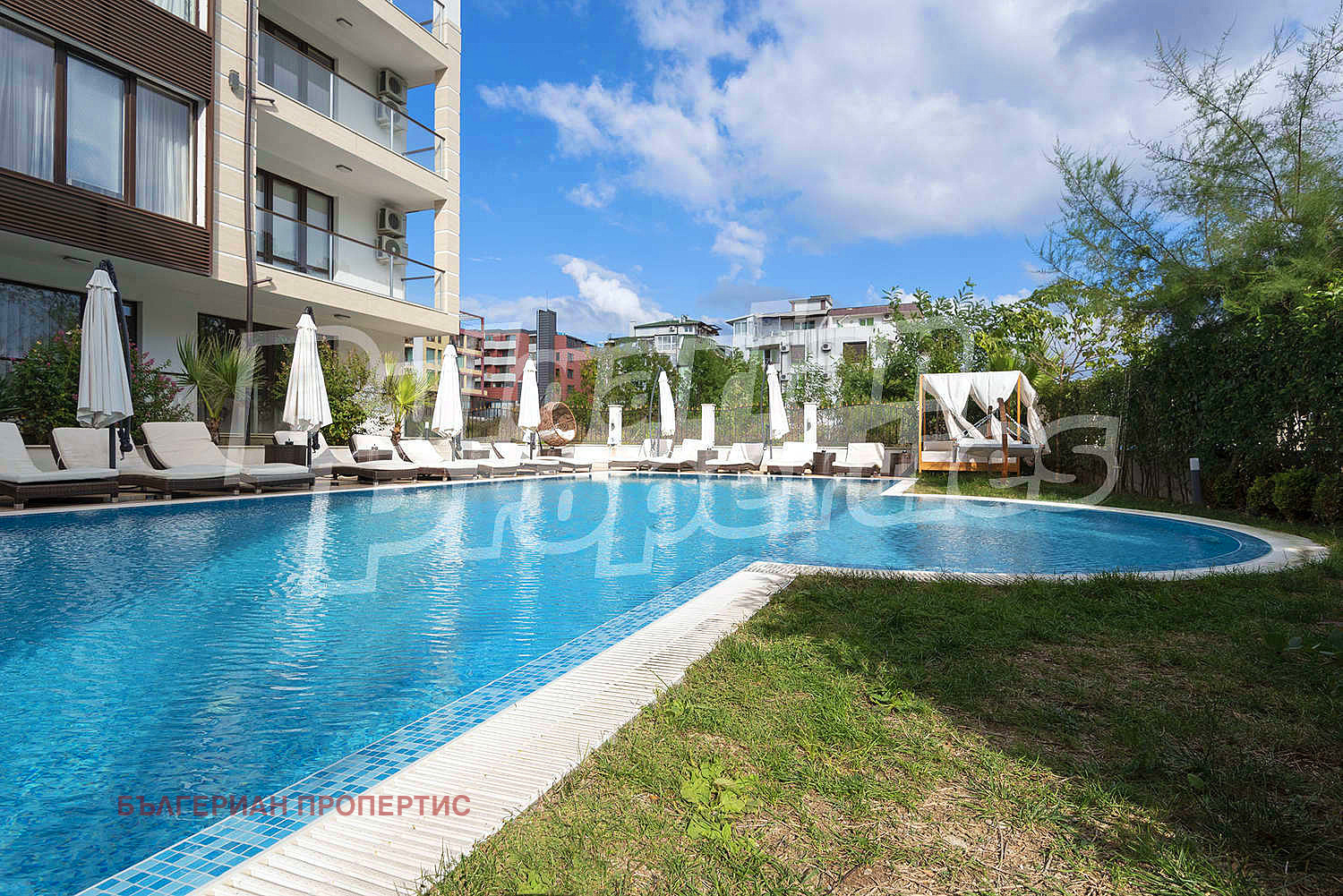 Стилно обзаведен двустаен апартамент в луксозна бутикова сграда от затворен тип, която се намира на първа линия в централната част на град Приморско, пред Южния плаж, само 2 минути пеш до централния площад и всички удобства.