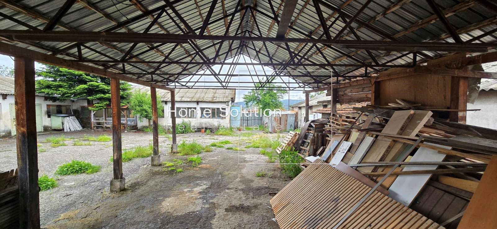 Имотът разполага с изградени сгради и навес, асфалтиран плац и е подходящ за редица бизнес дейности.