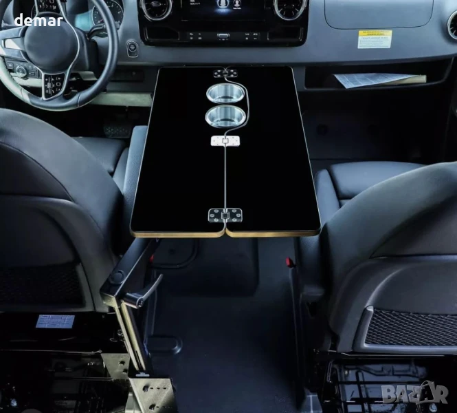 Сгъваем плот за кемпери/ванове с поставки за чаши от черен ламинат