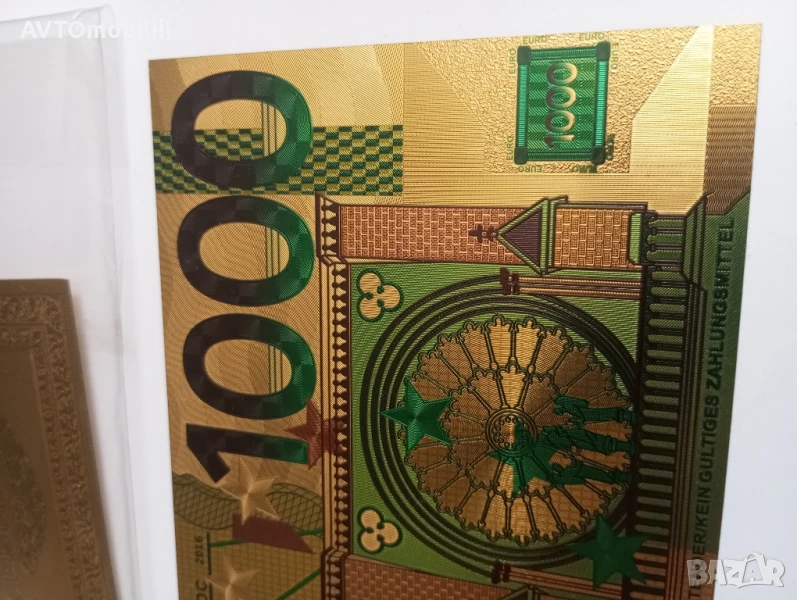 Позлатена с 24 карата злато 1000 евро със сертификат → Обява 51339478
