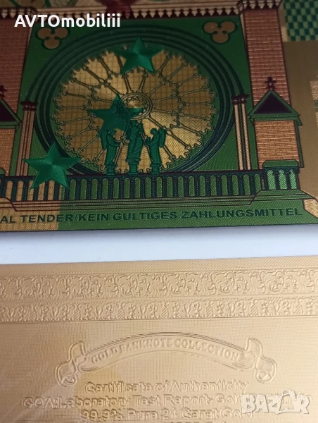 Продавам 1000 евро релефна позлатена с 24 карата злато банкнота с позлатен с 24 карата злато сертификат .