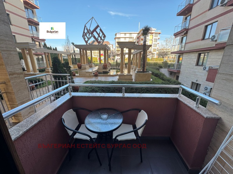 Продава се напълно обзаведен апартамент с две спални в престижния комплекс Tarsis Nova, разположен в централната част на Слънчев бряг, само на около 10 минути пеша от плажа.