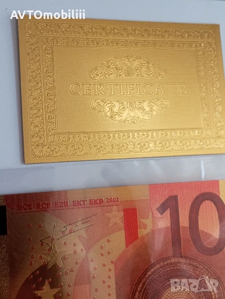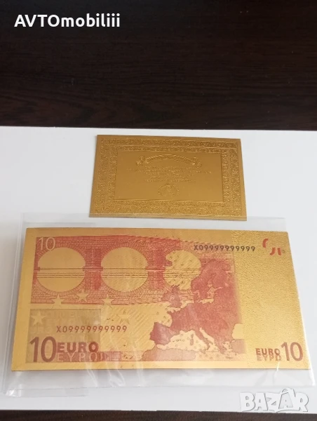 Позлатена с 24 карата злато банкнота 10 Евро със сертификат → Обява 51340770