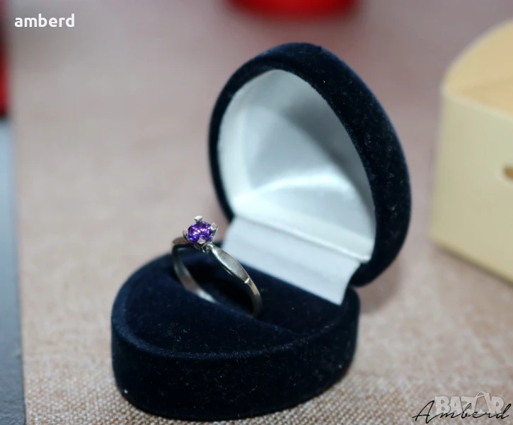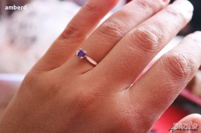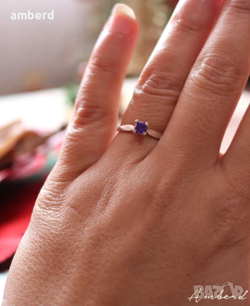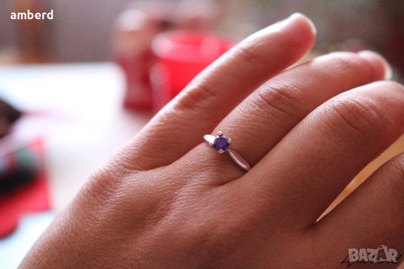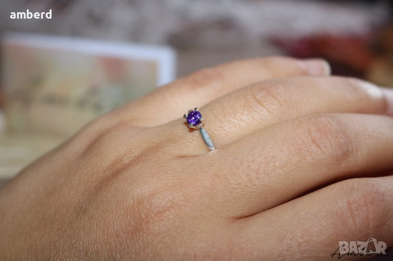 Много красив и нежен дамски пръстен изработен от сребро проба 925 с вътрешен диаметър 16.5мм. Наличен с лилав и жълт цирконий.