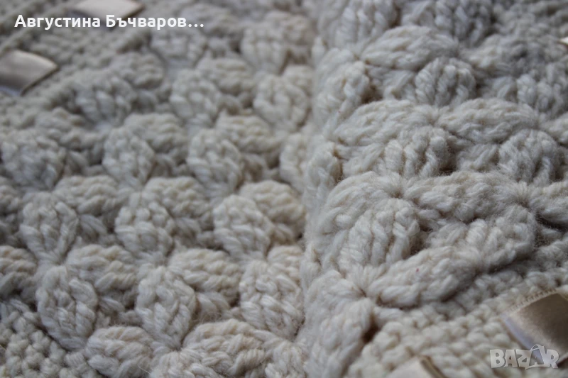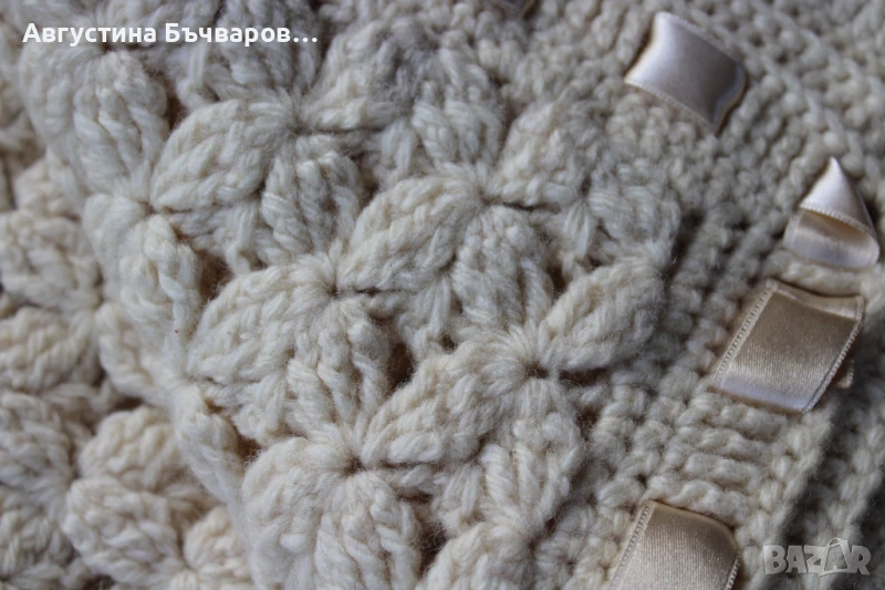 Ръчно плетена вълнена пелена за новородено (90х90) → Обява 51341324