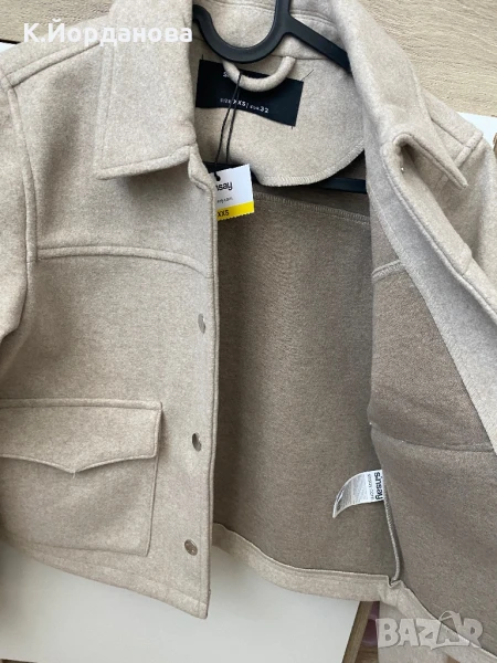 Якето е чисто ново, марка sinsay размер по етикет xxs, но отговаря на xs, с два джоба отпред, закопчава се с копчета