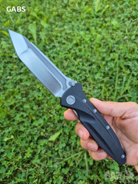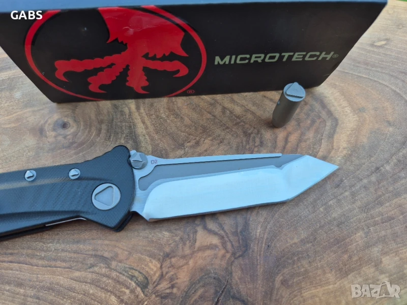 Сгъваем нож MICROTECH Socom Delta Tanto,D2 Описание: • обща дължина 22,8см • дължина острие 9,8см • дължина сгънат 13см • ширина острие до 2,8см • дебелина острие до 4,5мм • стомана D2 • дръжка G10 • щипка за колан • ключ за болтовете • тегло 181г Всички снимки са наши и дават реална представа за продукта.Изпращаме с куриерска фирма Еконт,с опция за преглед и тест.Разгледайте и другите ни обяви.