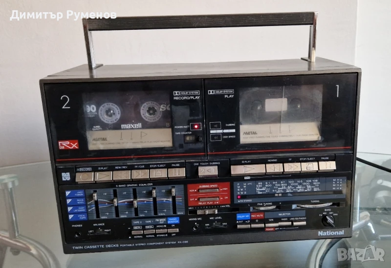 Един не случаен модел, рядък и трудно намираем радиокасетофон.Продава се без тонколони, антена не оригинална, липсва капака на батериите.Като цяло е работещ с добър тунер(което е важно) касета работи едната, но си е за ремонт, за почистване, има си работа по него.Външен вид горе долу добре.