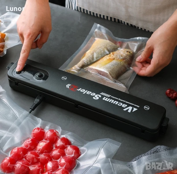 Вакуумният уплътнител е изработен от висококачествена ABS пластмаса и разполага с 2 в 1 двоен режим, подходящ за сухи и влажни храни – месо, риба, домашни птици, зеленчуци, сушени ядки, плодове и много други. Лесен и безопасен за употреба – само с едно докосване можете да изберете вакуумиране, уплътняване или едновременно вакуумиране и уплътняване. Достатъчно е да поставите торбичката в камерата и когато индикаторът премине от червен на зелен, процесът е завършен.