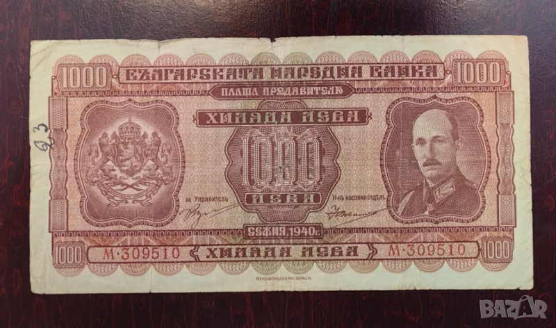 1000 лева 1940 година България, снимка 1 - Нумизматика и бонистика - 51342212 1000 лева 1940 година България, снимка 2 - Нумизматика и бонистика - 51342212 1000 лева 1940 година България, снимка 3 - Нумизматика и бонистика - 51342212 1/3