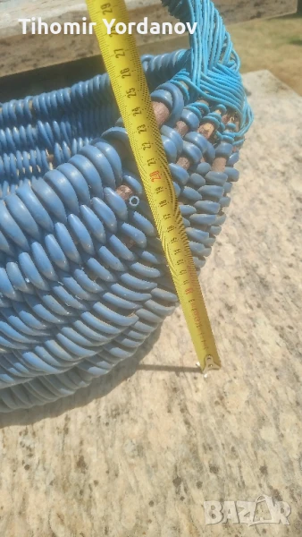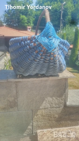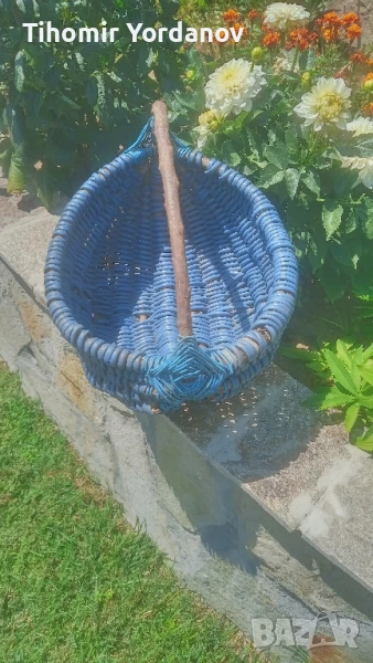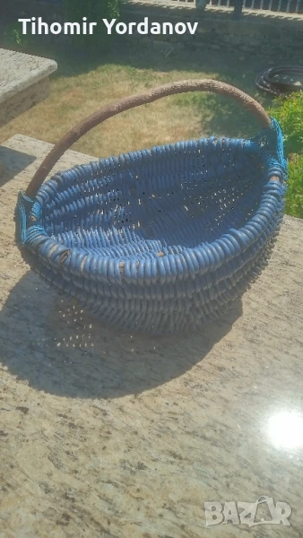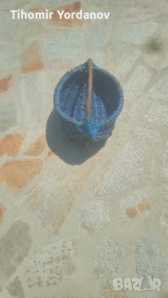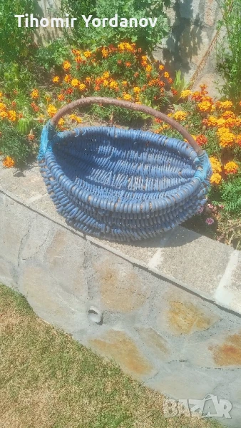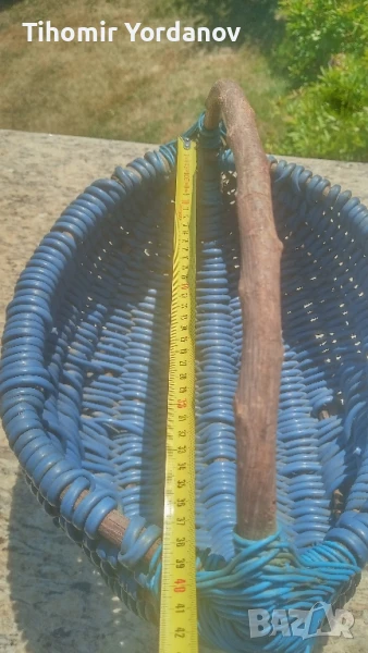Стара плетена кошница с пластмасова оплетка, здрава и запазена ,в реално автентично състояние.За употреба , украса и декорация . Размери от снимките.