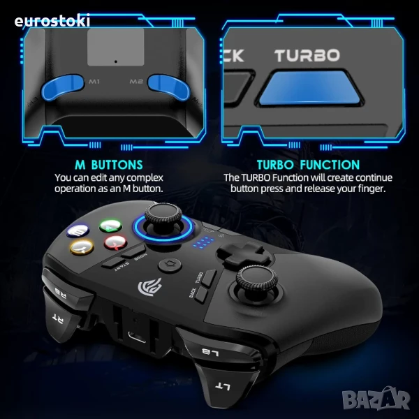 Контролерът EasySMX 9110 не поддържа Bluetooth и трябва да се използва с включения 2.4GHz USB приемник.