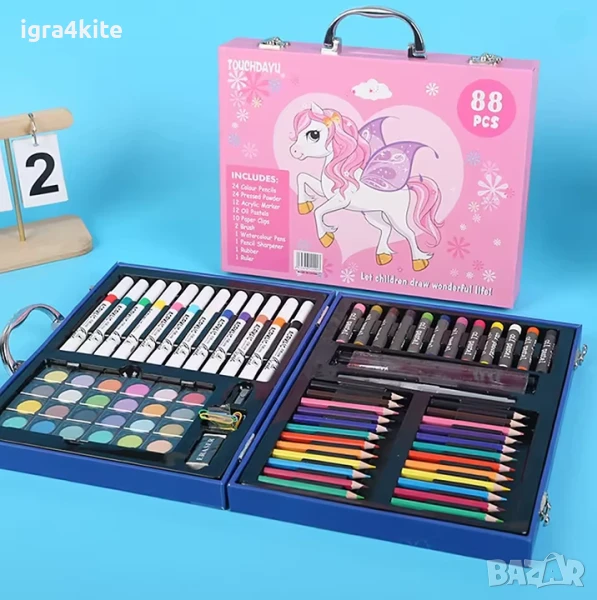 Дървено куфарче 88 части за рисуване и оцветяване