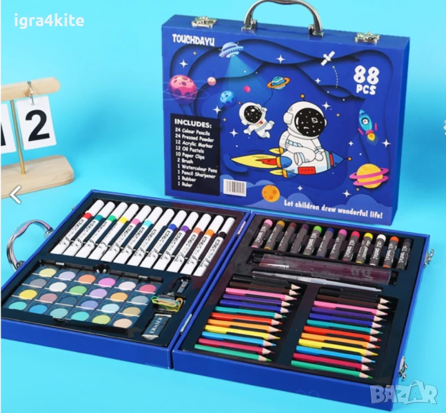 Съдържа: моливи, пастели, боички, флумастери, моливи и аксесоари