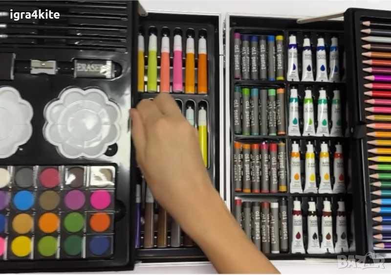Комплект за рисуване с акрилни маркери, цветни моливи, пръчици маслени бои