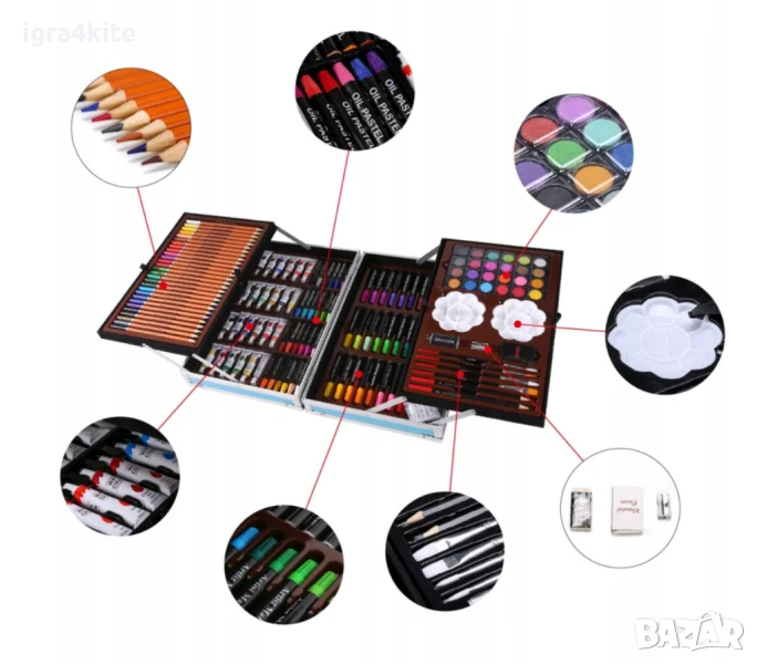 Съдържа: моливи, пастели, боички, флумастери, моливи и аксесоари