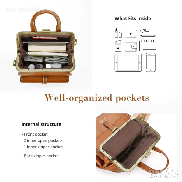 Кожената чанта е с винтидж закопчаване с месингов метален акцент за бърз достъп и прави тази чанта специална.