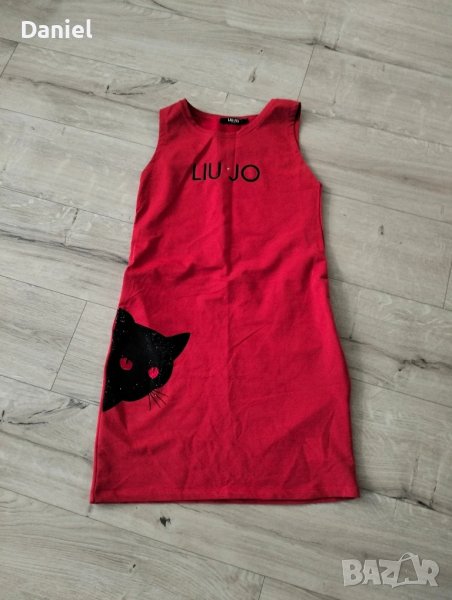 Лятна дамска рокля от фино трико , удобна със спортно - елегантна линия , лого на бранда от красиви черни камъчета , със скрити странични камъчета, без следи от употреба....