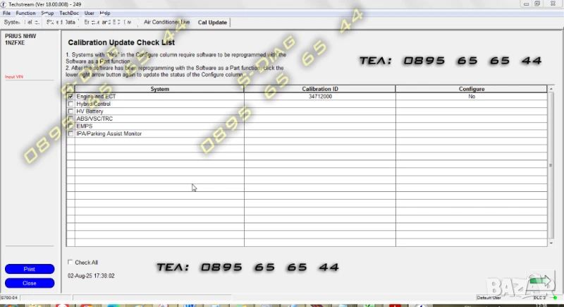 6. Пълна версия с възожност за работа по всички модули: Поддържа почти всички модули на Toyota/Lexus/Scion, включително двигател, трансмисия, ABS, SRS и много други.