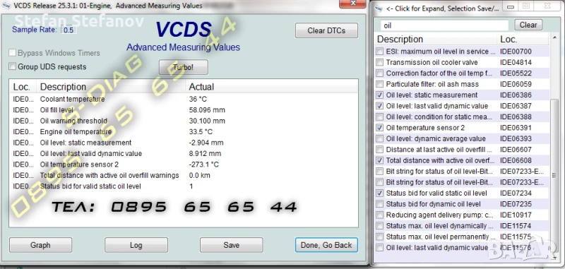 - да следите и записвате параметри и стойности във всички контролери в реален режим на работа;