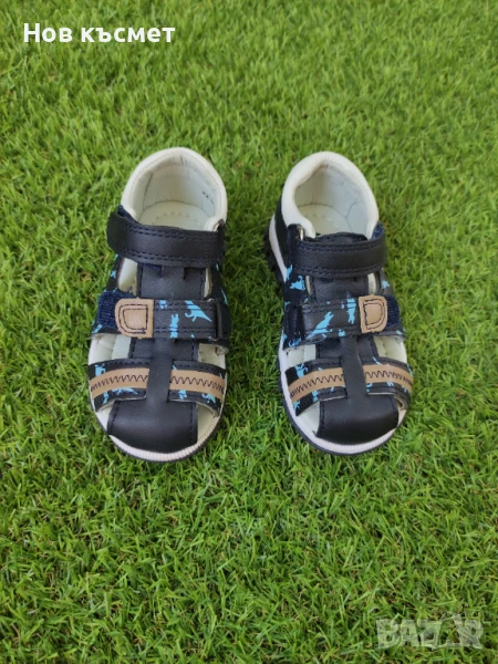 Детски кожени сандали Action boy, тъмно син цвят с динозаври. Меки и удобни отвътре, стабилна подметка с грайфер. Закопчава е с регулиращи се велкро лепенки, за по-добро прилепване към крачето!