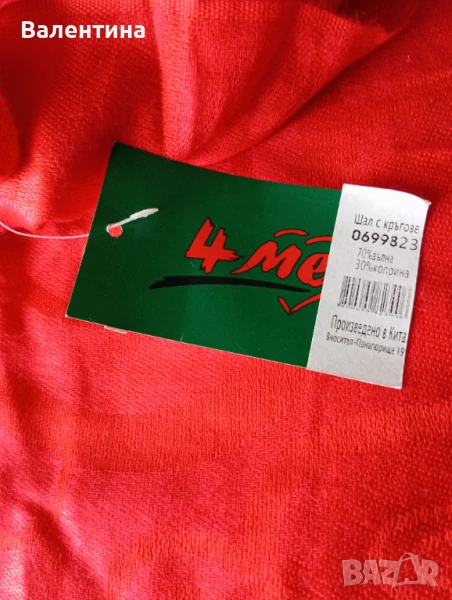 Нов червен шал с кръгове.