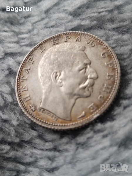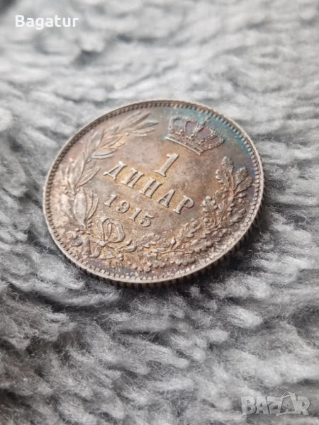 Сребро Сърбия динар 1915, патина,монета, Крал Петар → Обява 51347231