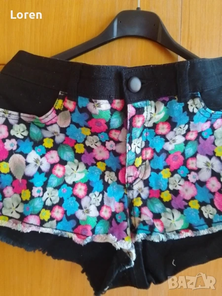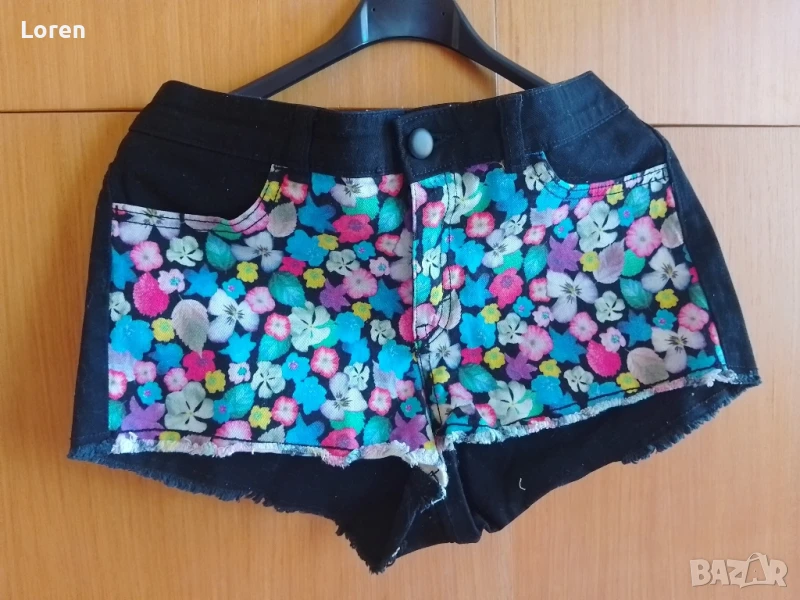 Като нови!Къси черни дънки на цветчета → Обява 51348047