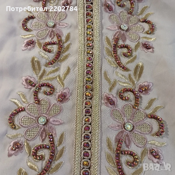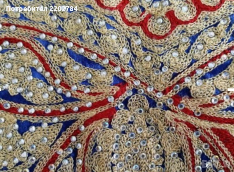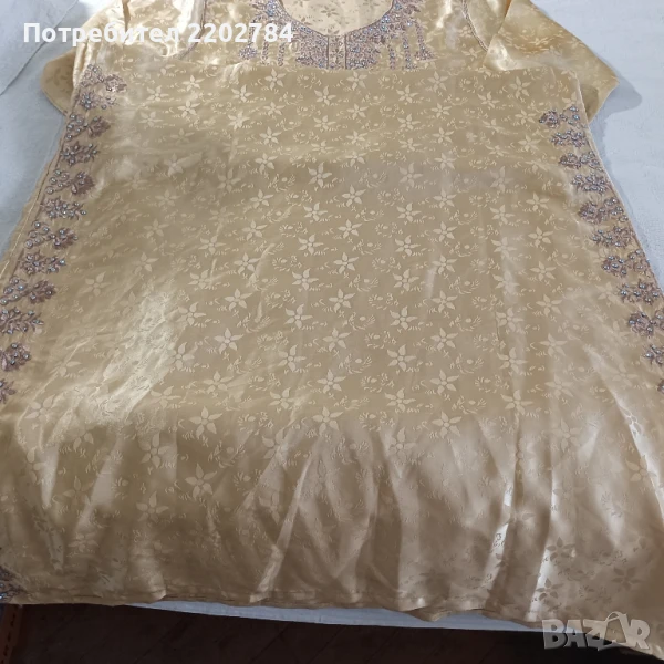 Втората е от сатен в цвят старо злато,с бродерии със златно ламе и блестящи камъчета.Камъчетата са лепени,не пришити.Без забележки.
