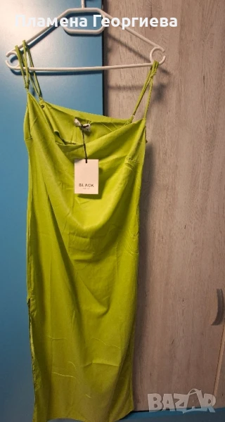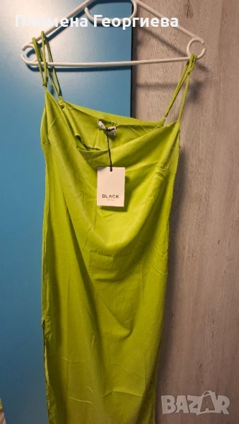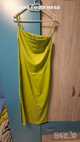 Страхотна зелена сатенена дамска рокля С размер → Обява 51348381