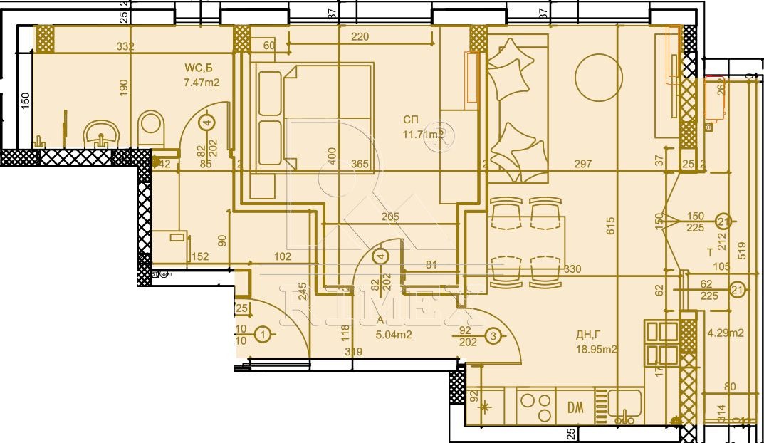 Разпределение: всекидневна с кухненски бокс, спалня, баня с WC, тераса.